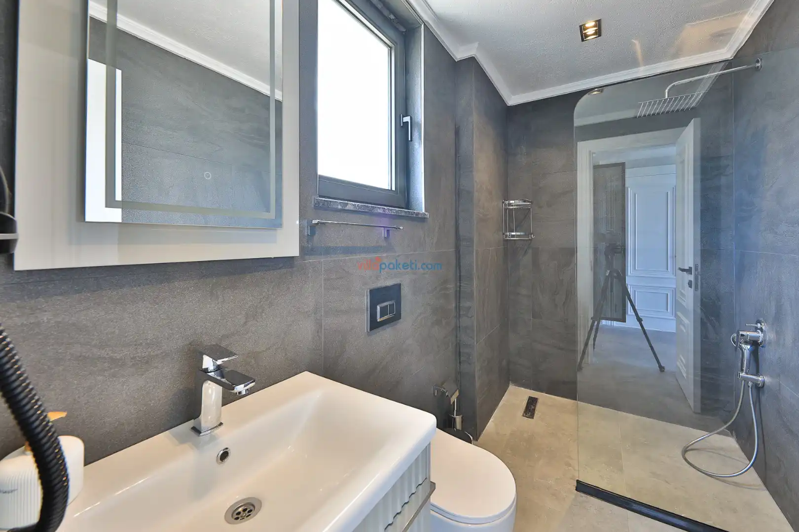 Deniz manzaralı, 6 yatak odalı bu lüks villa, özel havuz, jakuzisi ve dış mekan projeksiyonu ile konforlu bir yaşam sunuyor. Geniş teras alanı ve şık iç mekanlarıyla her ayrıntı özenle tasarlanmış. Akşamları açık havada sinema keyfi yapabilir, gün batımını izlerken rahatlayabilirsiniz. Modern tasarımı ve doğal çevresiyle unutulmaz bir tatil deneyimi için ideal.